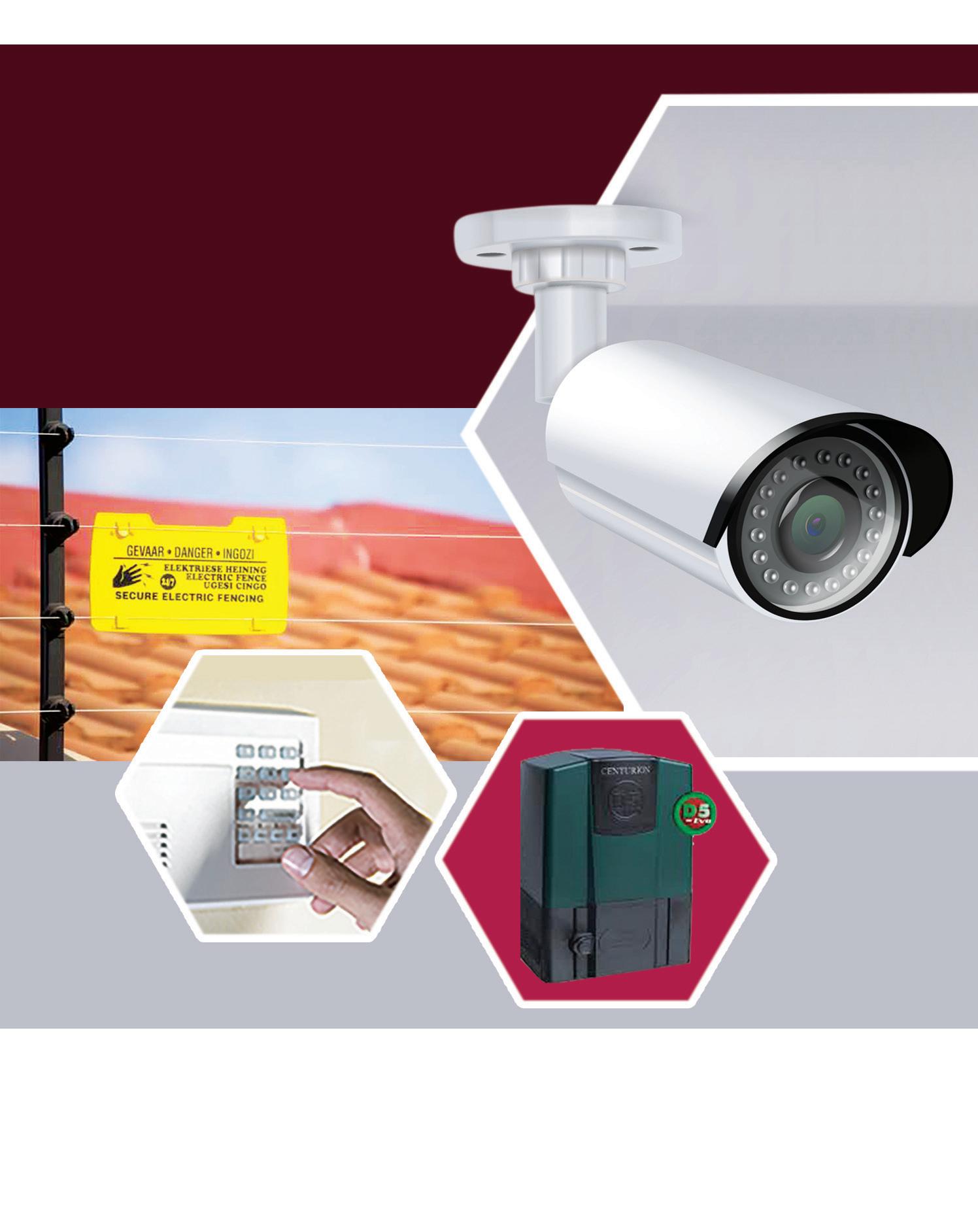 PRETORIA • 13 TO ADVERTISE PHONE 0861 11 4663 SECURE IT ALL ALARMS SYSTEMS CCTV GATE MOTORS ELECTRIC FENCING I DS 805 Alarm Panel IDS 8 Zone LED Keypad Siren Transformer Call Gunther for a FREE security assessment l 082 301 9368 l gunnels@mweb.co.za • 12 Volt Battery • 2 x Wired Indoor PIR • 2 x Door Magnets (White) • 2 x Fixed Panic Buttons INSTALLED R2 999 .00 INSTALLED R6 199 .00 • Centurion DS Evo or • ET Drive 500 gate motor with anti-theft bracket R1 990 .00 each REMOTE VIEWING ON PHONES (App Store/Android) INSTALLED from R7 999 .00 excl. monitor • 4 x 20m Infra-red Cameras • 720p High Definition • 100m Cable & Connectors • 5 Amp Power Supply Dahua 4 Channel Recorder Camera 1xTB Hardrive DISCOUNTED only DISCOUNTED only Prices excludes VAT • Prices valid while stocks last. T’s & C’s Apply • E&OE Add gate beams (wired swop out only) FOR ONLY R699.00 or a gate anti-theft alarm FOR ONLY R799.00 EZVIC CAMERA INSTALLED • VAT INCL. R55 999 .00 POWER YOUR ESSENTIALS • 1 x Lux Power 5KVA 38V Voltage Inverter • 1 x 5.1 Kwh Lithium-Ion Battery TAKE BACK YOUR POWER • 1 x Lux Powe r 5KVA 48V High Voltage Inverter • 4 x Csun Poly Crystaline Solar Panels • 1 x 4.8Kwh Lithium-Ion Battery INCLUDES: Inge roof mount bracket kit, roof hooks, end clamps, middle clamps, steel Y-Rail both AC & DC, change over swithches with circuit breakers & surge protection & Battery Fuses. INSTALLED • VAT INCL. R71 999 .00 SOLUTIONS FOR A SECURE HOME RAPID CHARGER KIT • 1 x Rapid Charger • 1 x IDS 24VDC power supply 1 x Lithium battery