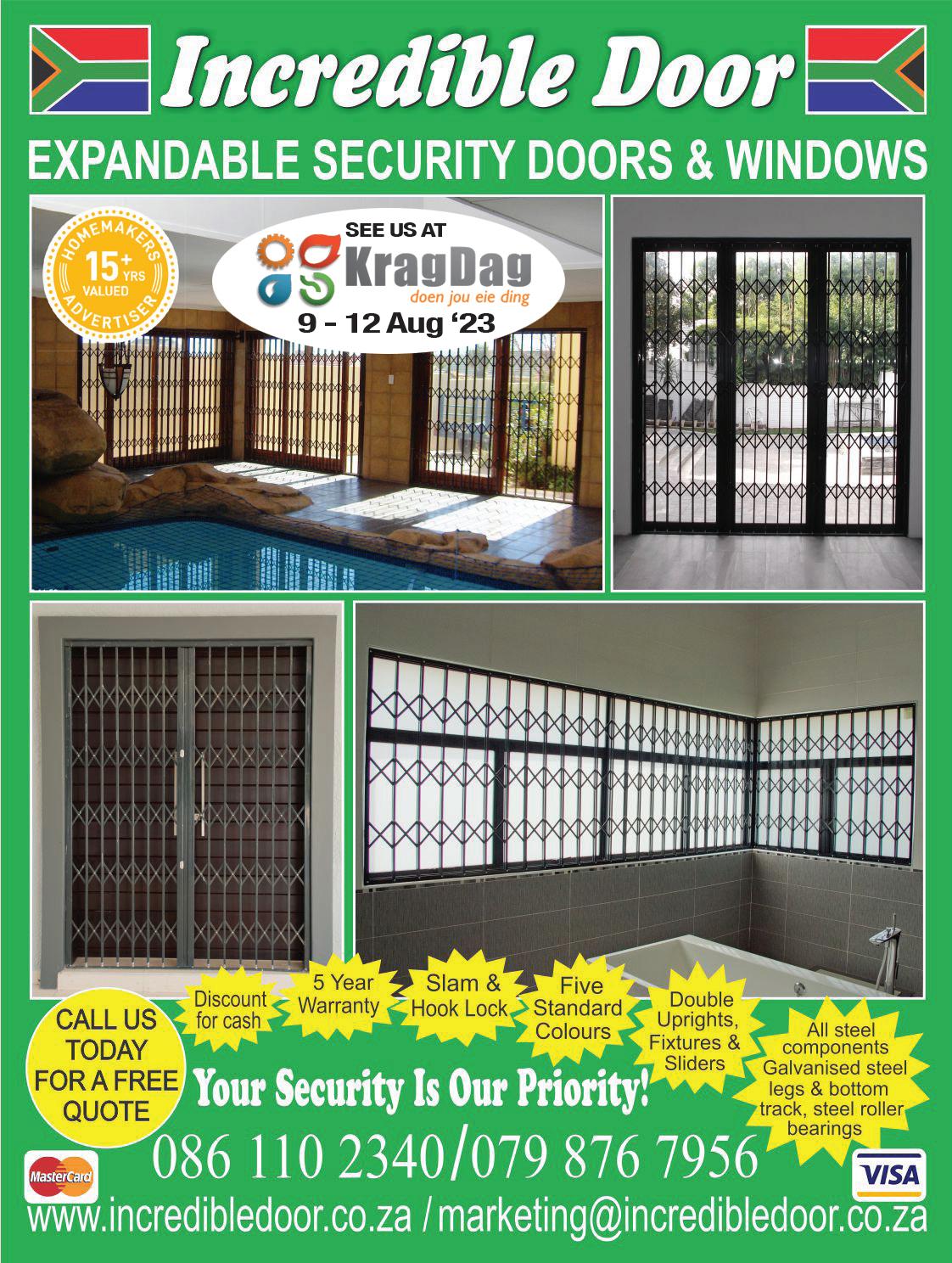 HOMEMAKERS JULY 2023 6 • PRETORIA WWW.HOMEMAKERSONLINE.CO.ZA 350mm R2 199 550mm R2 599 700mm R4 699 save on your electricity bill with Skylights Combo 1 2x 350mm skylights R3 999 Combo 2 1x 350mm& 1x 550mm R4 399 Combo 3 2x 550mm skylights R4 799 BENEFITS OF TURBINE VENTILATORS Removes heat, fumes, steam and dust. • Improves effectiveness of insulation.• No maintenance / operating costs • Improves air quality • Water and dust proof. • WINTER SPECIALS ilanga skylights 082 44 66 001 • 012 377 3565 info@ilangaskylights.co.za www.ilangaskylights.co.za Follow us on AVAILABLE IN ROUND & SQUARE TUBES 078 197 7836 traxdor@lantic.net www.traxdor.co.za TRAXDOR SECURITY TRELLIS GATES FIXED & ADJUSTABLE LOUVRE AWNINGS FOR PATIOS & CARPORTS POLICARB WINDOW SECURITY SOLUTIONS CLEARVISTA WINDOW & DOOR SECURITY SOLUTIONS WE WILL MATCH ANY SIMILAR QUOTATION OF A SIMILAR QUALITY PRODUCT! FREE QUOTES FROM YOUR LOCAL AGENT YOUR SAFETY, OUR PRIDE