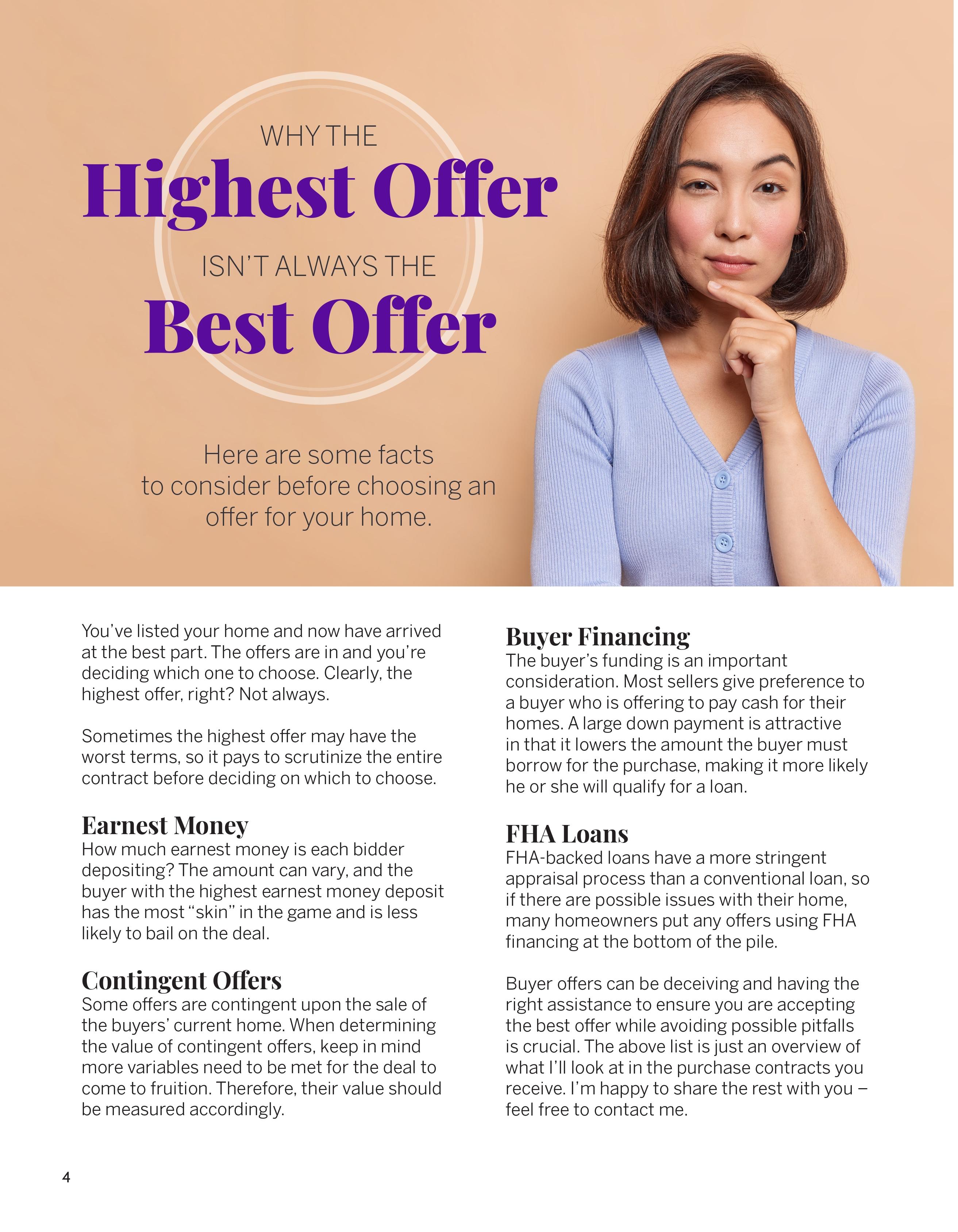 Experience is critical when negotiating best offers. My clients tell me that they have more peace of mind knowing that I am watching out for their best interests.