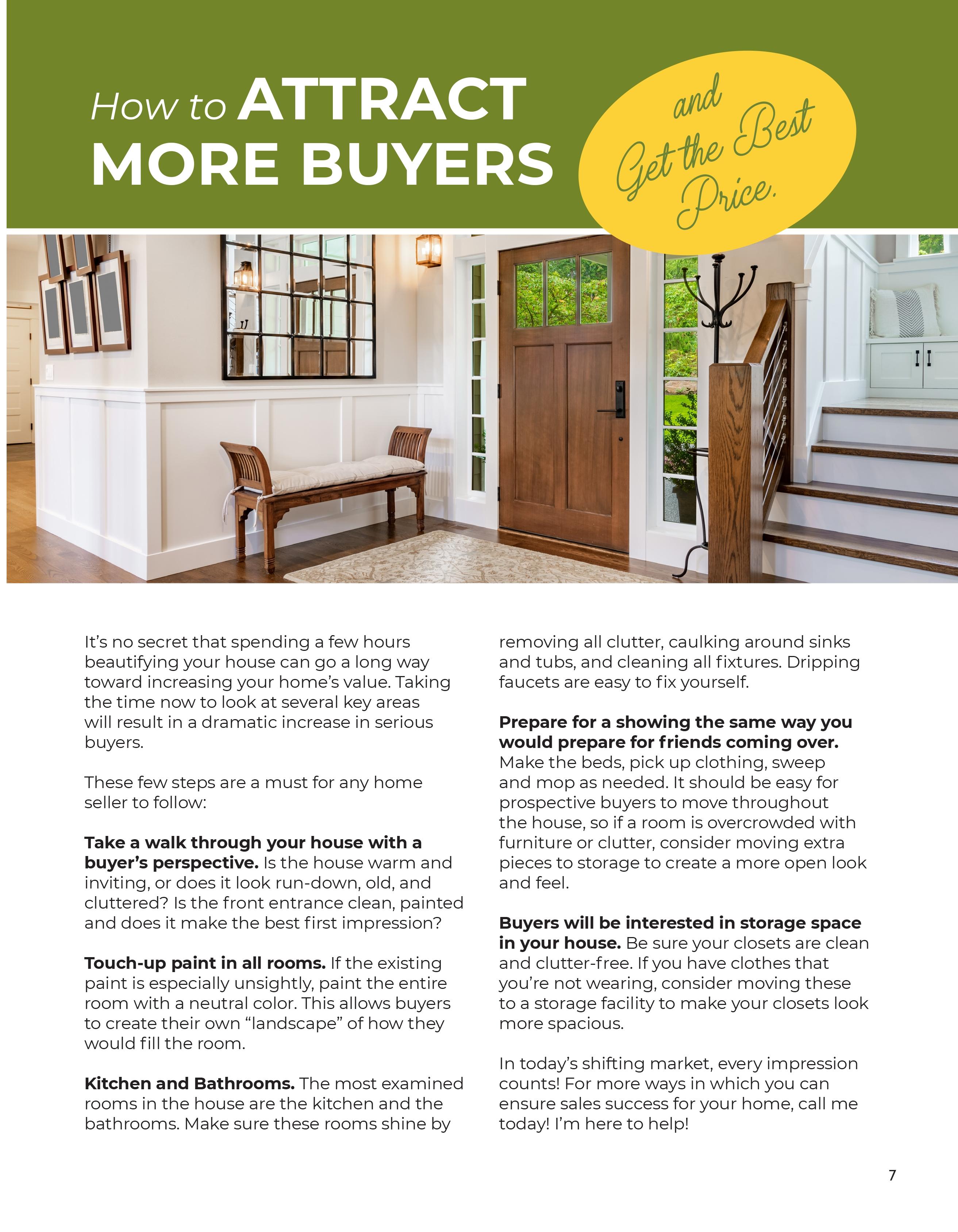 From the start, getting the price right is one of the most important decisions related to getting your home sold for top dollar. I am an expert at determining the best fair market value and pricing strategies to accomplish this goal