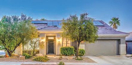 BR, 2 BA, 1811 SF home features vaulted ceilings that add a sense of grandeur to the open and airy oor plan. Safety and security are a priority, with security covers on windows for peace of mind. Step outside to the open backyard, where you’ll enjoy a low-maintenance