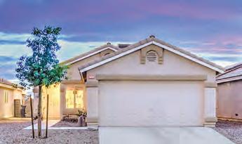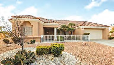 MADEIRA CANYON One-story home on expansive corner cul-desac lot with mountain views! Approx. 1754 SF, 3 BR, 2 BA, 2-car garage. Premium .22-acre lot with no neighbors behind. Spacious living room, dining area with sliding glass door to backyard and kitchen with granite countertops, pantry, tile flooring, recessed lighting and all appliances. Owner’s suite with ceiling fan, bay window, walk-in closet and bathroom with dual sinks, bathtub and separate shower. Laundry room, blinds, two-tone paint and finished 2-car garage with epoxy floor coating. Gated courtyard entry and private backyard with covered patio, firepit and gas BBQ stub. $485,000