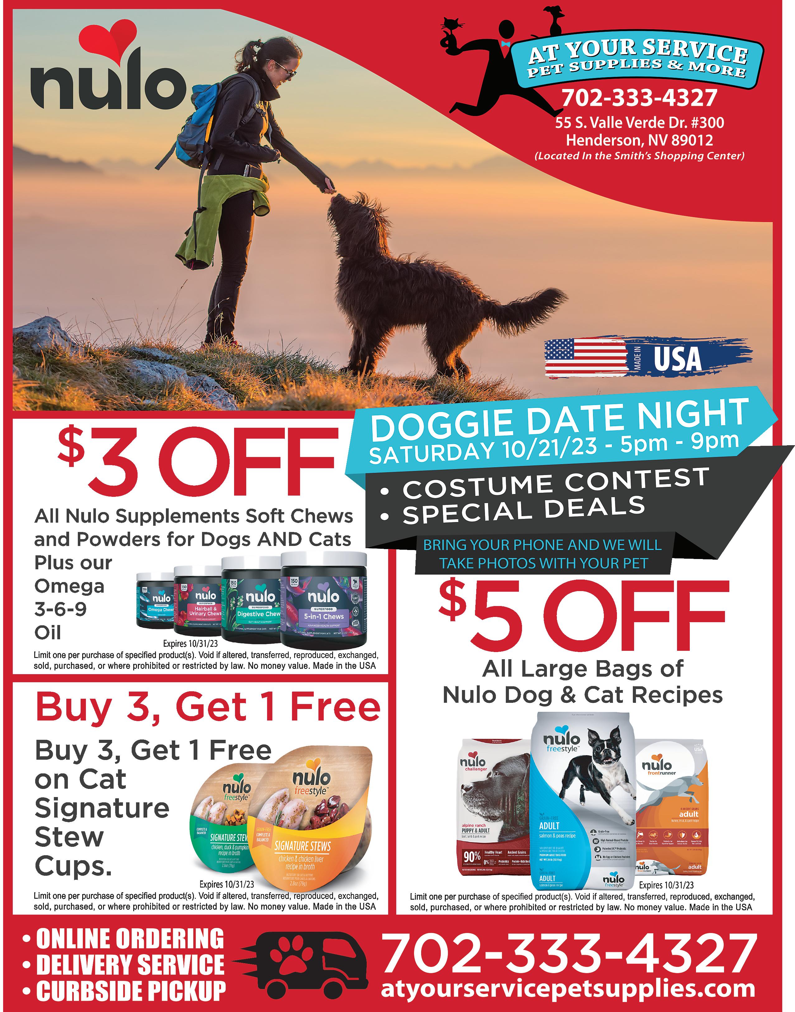 5pm–9pm. Costume contest, special deals. Bring your phone and we will take photos with your pet! www.atyourservicepetsupplies.com