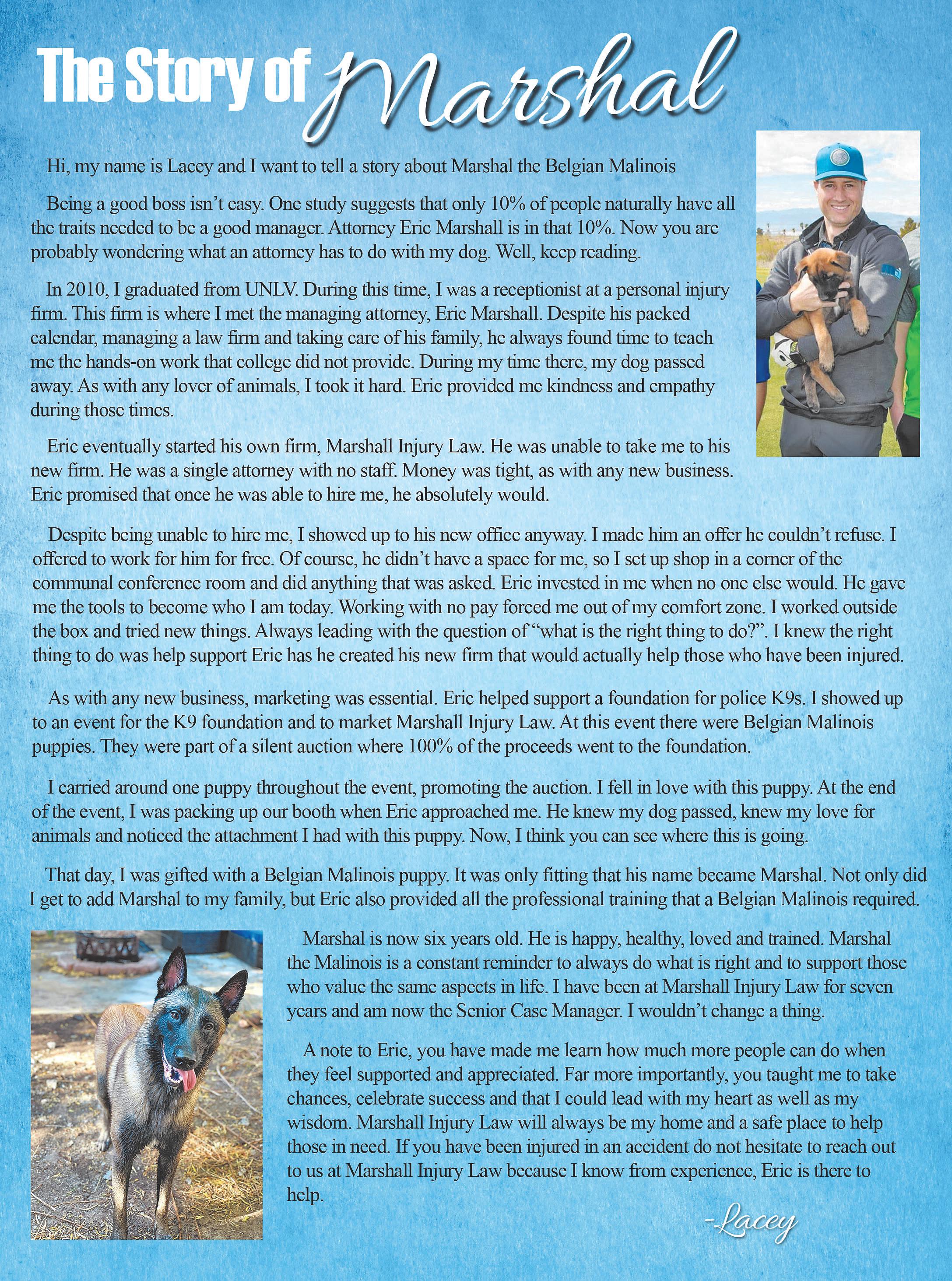 9691 Trailwood Drive, Las Vegas, NV 89134 www.TrailwoodCatHospital.com Trailwood Cat Housecall Services CALL NOW: (702) 637-0475 Where Every Cat Is Special To Us! JOB OPPORTUNITIES AVAILABLE 7 Las Vegas Pet Scene Magazine • September/October 2023 FOR SALE ➠ K9 Dog Luring Company Business Opportunity with Unlimited Income Potential! SALE INCLUDES ALL EQUIPMENT… 5x8 trailer, generator, netting, pulleys, timers, digital wireless remote to control the LIL MONSTER LURING MACHINE, tunnels, ramps, re-winder, string, lures plus so much! TWO COURSES: OBSTACLE | FASTCAT K9 Allure would be the main draw. Endless possibilities with private events, etc. DOGS HAVE A BLAST! Call Dave Weinberg at 702-203-9651 for more information. GREAT OPPORTUNITY TO OWN YOUR OWN BUSINESS! Price $15,000 (negotiable) Visit website for photos, videos, safety and rules, prices, news plus more! www.K9Allure.com