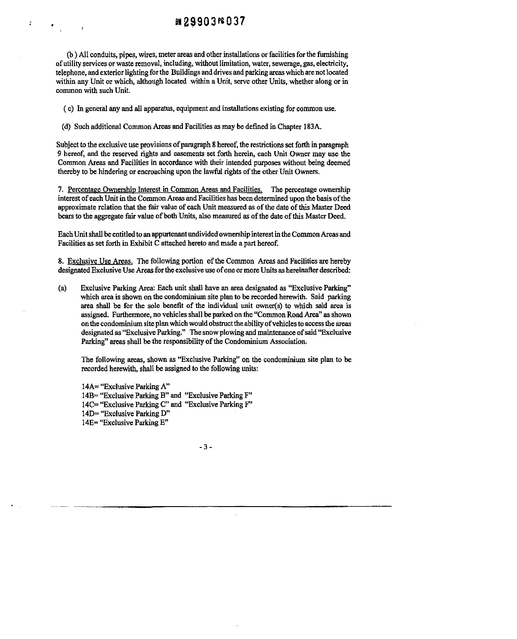 undivided ownership interest in the Common Areas and Facilities which is appurtenant to such Owner's Unit as set fonh inthe MasterDeed.