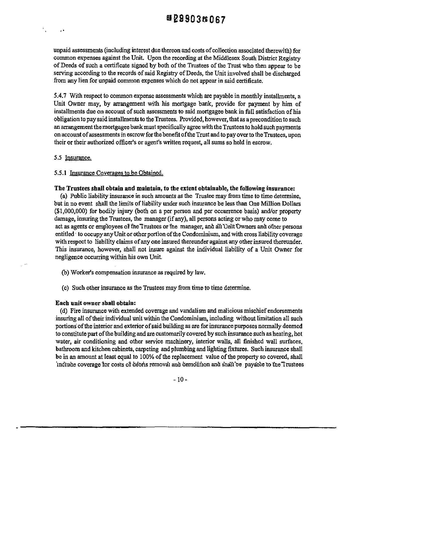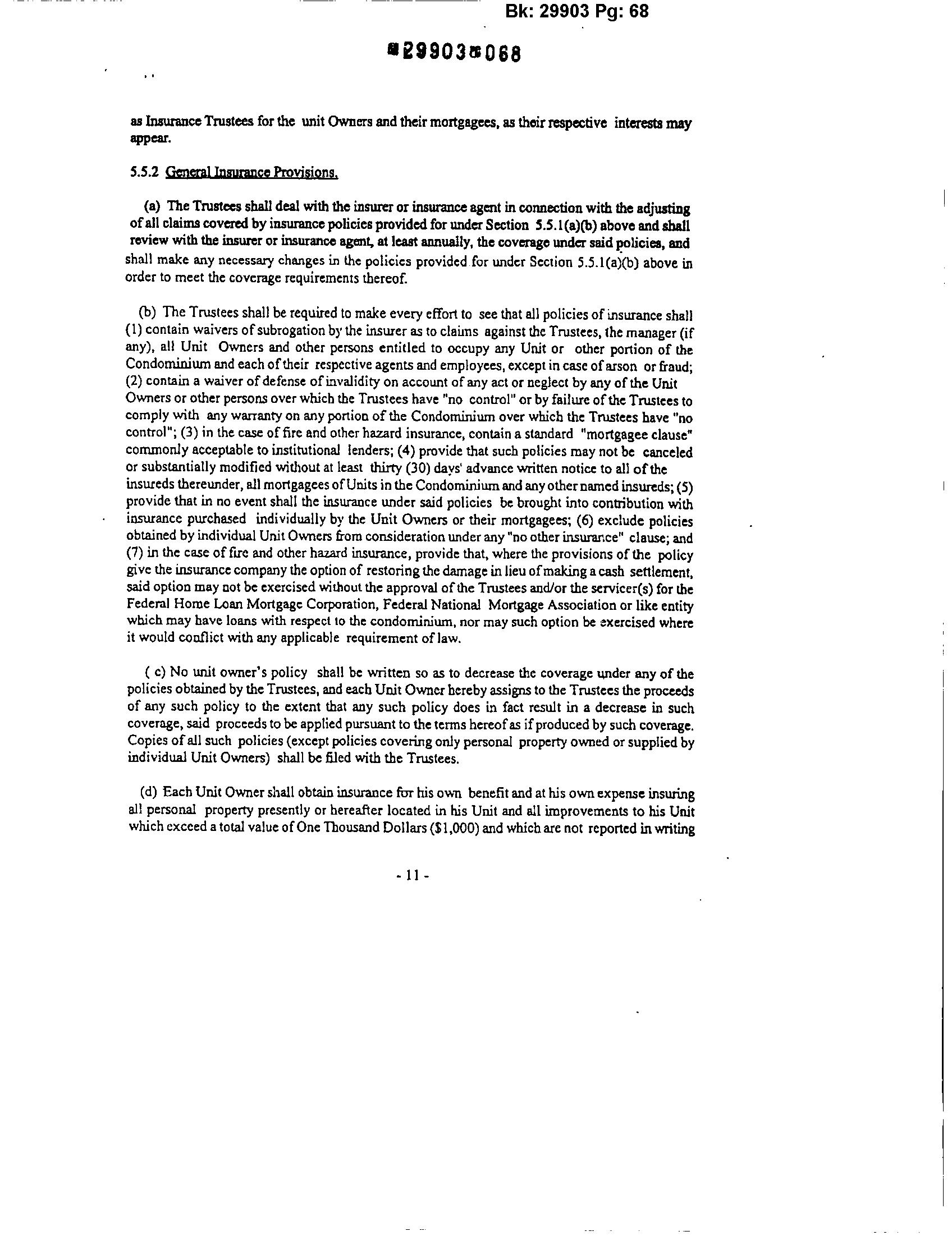 5.5.4 Thecost ofall suchinsuranceobtainedandmaintainedbytheTrusteespursuantto provisions of Section5.5.l(a)(bX c) shall be acommon expense.