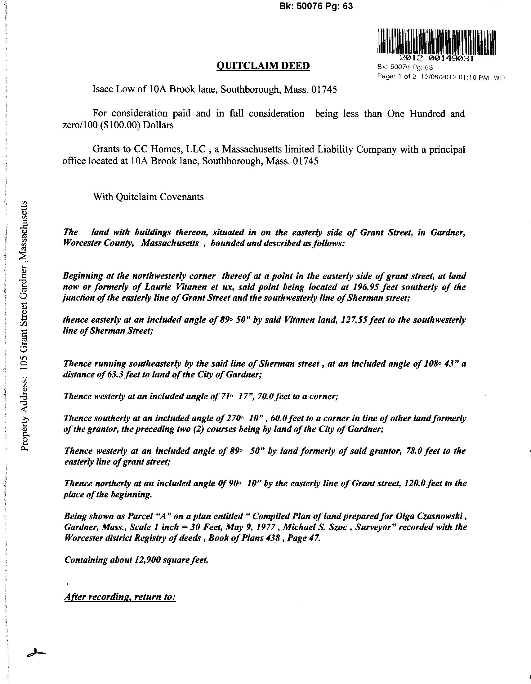 Grant Street Gardner, MA 01440-2772 Worcester County List Price: $289,900