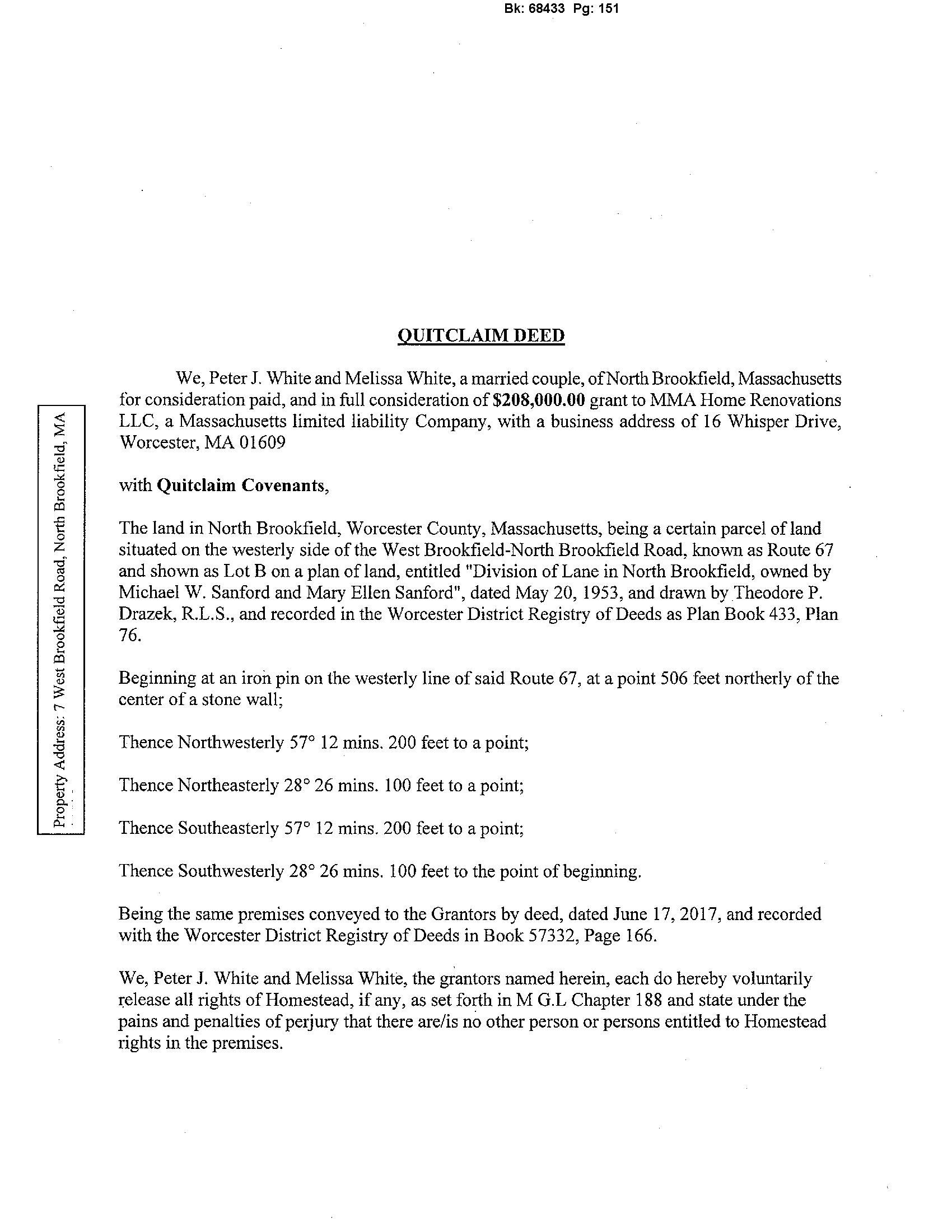 Approx. Street Frontage: Handicap Access/Features: No Directions: Heading South on Rte. 67 and 148 (South Main St) bear right on to Rte. 67 South (West Brookfield Rd)