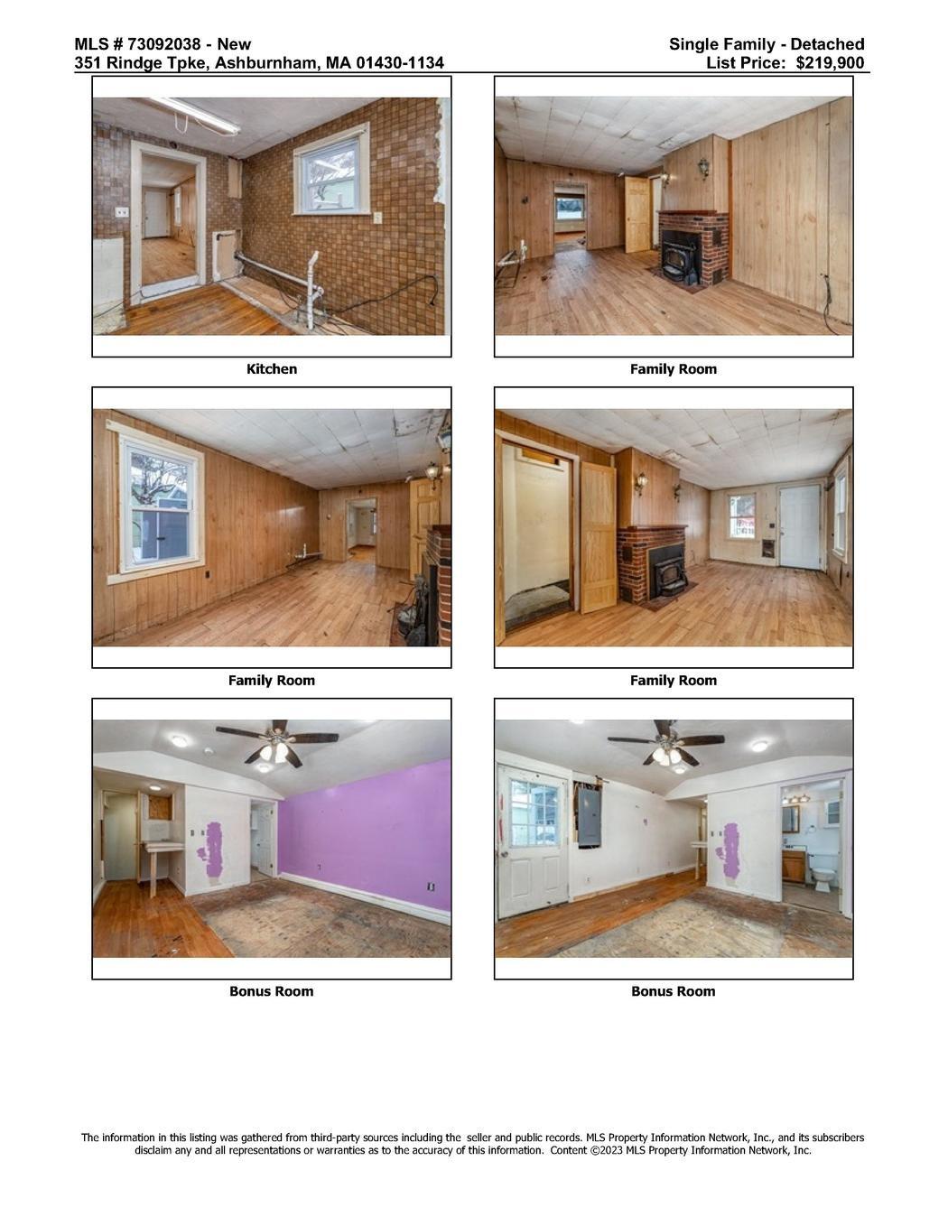 Content ©2023 MLS Property Information Network, Inc. Exterior - Front MLS#73092038- New SingleFamily-Detached 351 Rindge Tpke Ashburnham, MA 01430-1134 Worcester County List Price: $219,900 Style: Cottage Total Rooms: 5 Color: White Bedrooms: 2 Grade School: Bathrooms: 1f 1h Middle School: Main Bath: High School: Fireplaces: 1 Approx. Acres: 0.06 (2,600 SqFt) Approx. Street Frontage: Handicap Access/Features: No Directions: Route 119 to Route 101 (Ashby Road) to Rindge Turnpike