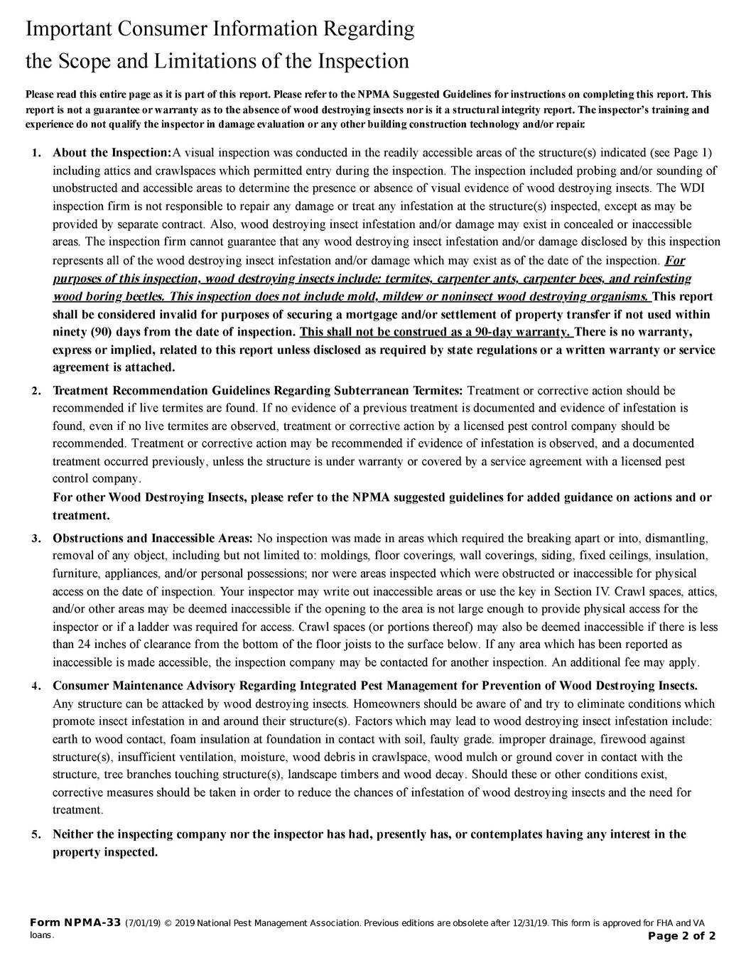 This con dential home inspection report is for the exclusive use of the client and may not be transferred, assigned, sold, or relied upon by any third party. The results of the inspection and information contained in this report are based on observations of visible and accessible areas on the date of inspection. This report is not a guarantee or warranty against future defects in an inspected property.