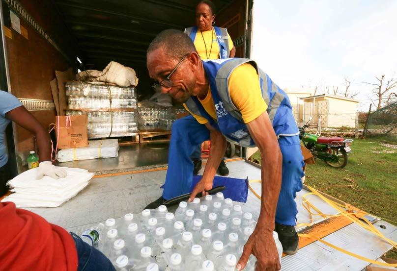 With a network of more than one thousand partner churches and community institutions Food For The Poor was able to distribute emergency supplies within days of thestorm.Food,medicalkits,water, tarps,hygienebundlesandbuilding materials were moved from Spanish Town into affected regions and then into the hands of families whoneededthemmost.