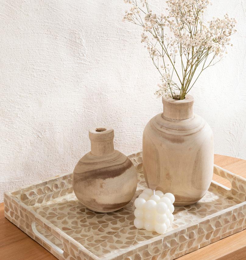 Display trays offer a chic and straightforward method of showcasing functional items in your home. Pair these items in sets of three and choose various textures to achieve a balanced appearance.