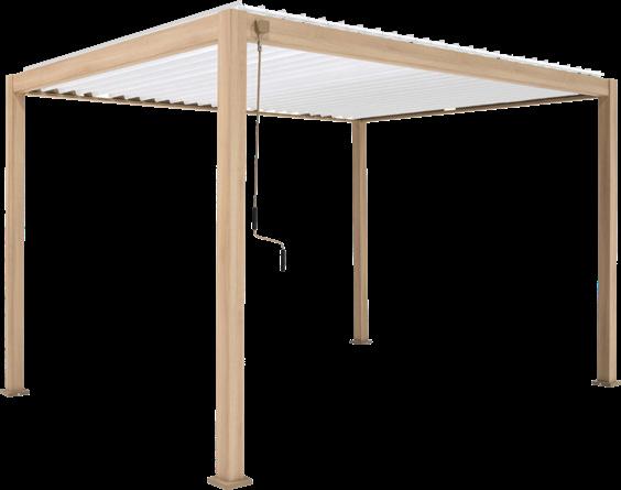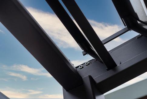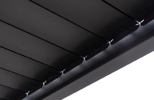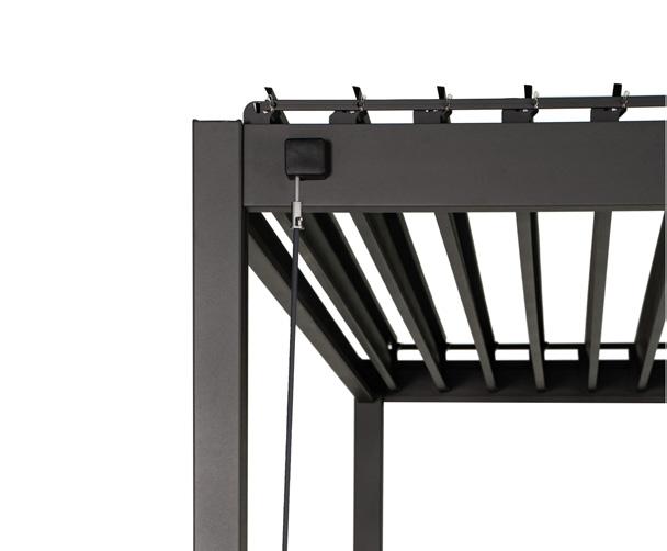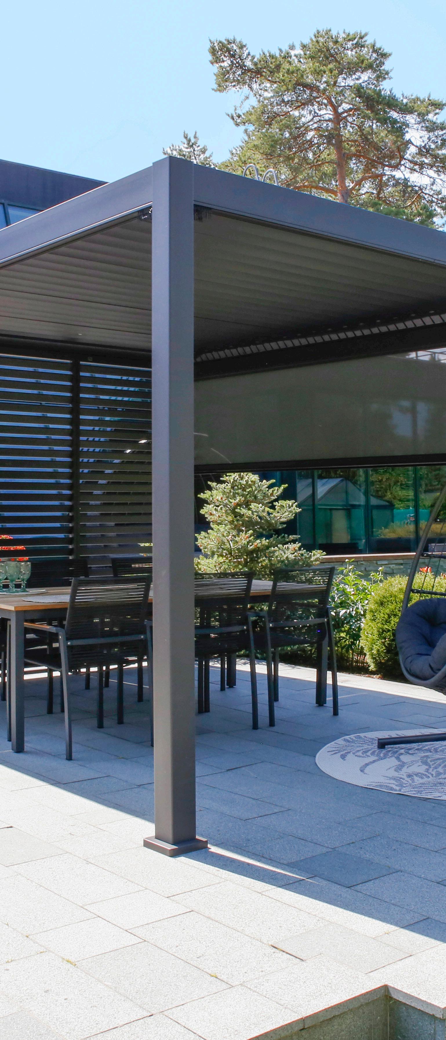 Sujuvalt avatav ja suletav lamellkatus pakub kaitset ja varju nii vihma kui kõrvetava päikese eest