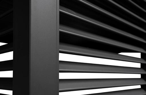 Küljepostid on valmistatud alumiiniumist, lamellid terasest. Kaetud tumehalli pulbervärviga. 19509