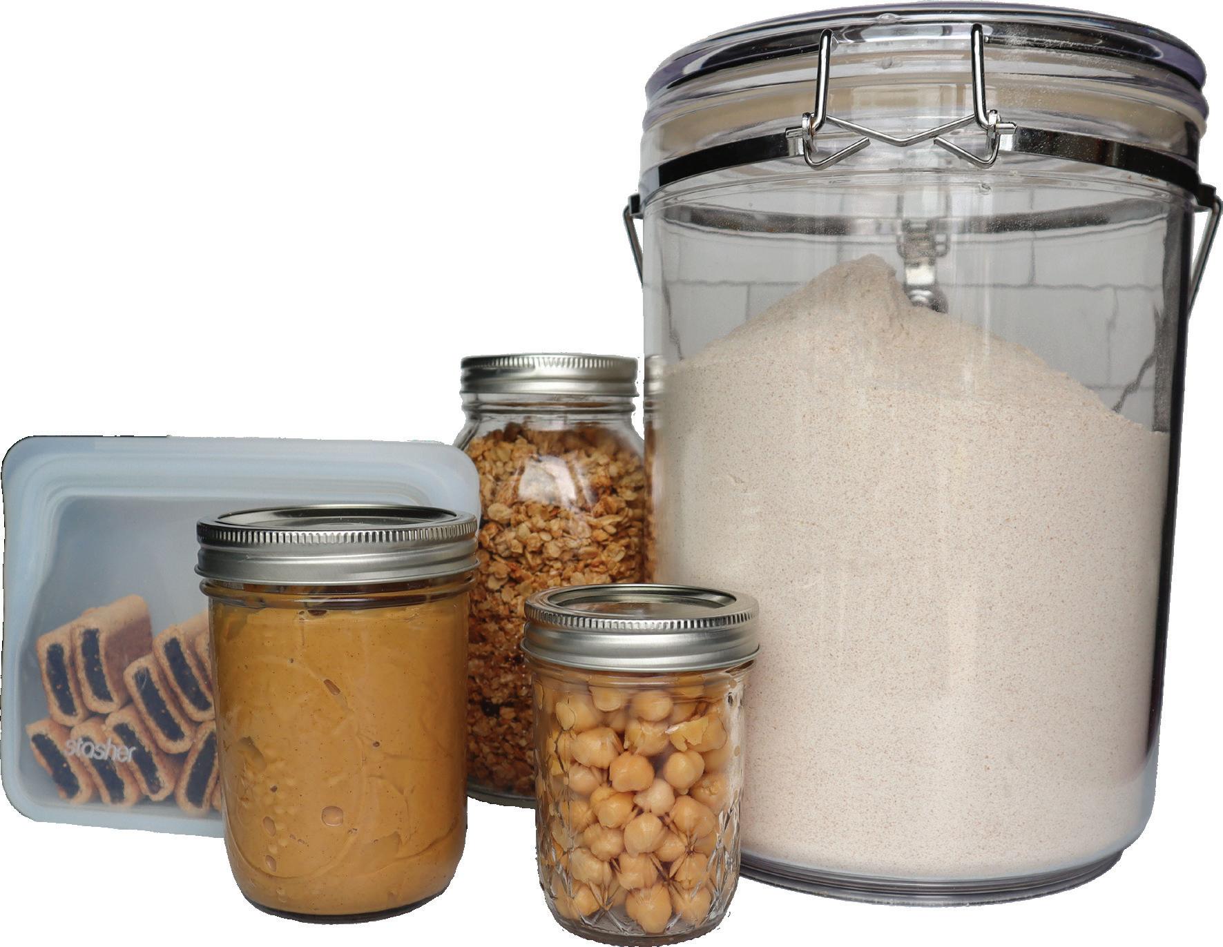 We shopped for some go-to items in Bulk and Grocery to do the comparison: peanut butter, whole wheat flour, garbanzo beans, granola, and fig cookies (absolutely an essential!). When we compared the numbers, quantity for quantity, there was an overall cost savings of $4, which may not seem like a whole lot. And then we took a look at the garbage created. Both the cereal and fig cook ies come with two layers of packaging, the flour bag is not recycla ble. Washing the plastic peanut butter jar to render it clean enough to recycle wastes an incredible amount of water (a precious resource that is in increas ingly limited supply).