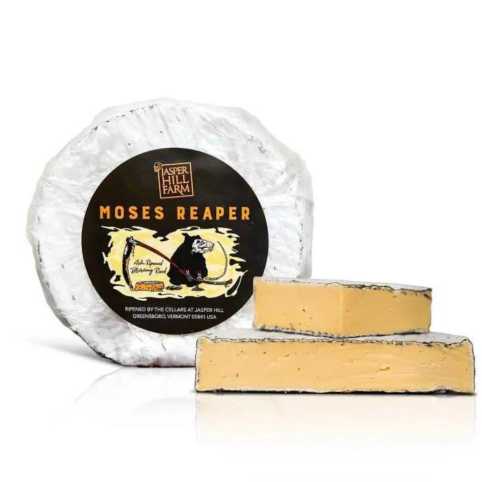 This spooky adaptation of Moses Sleeper is coated in ash before the bloomy rind develops, giving a dark robe to the cheese’s annatto-colored paste.