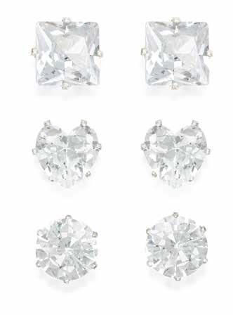 Three piece rhodium plated earring set. 8mm clear glass crystal.