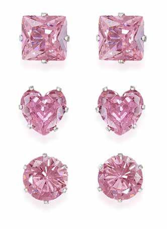 Three piece rhodium plated earring set. 8mm light rose glass crystal.
