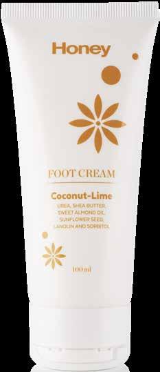 Honey foot cream. Coconutlime fragrance. Shea, sunflower seeds and lanolin.