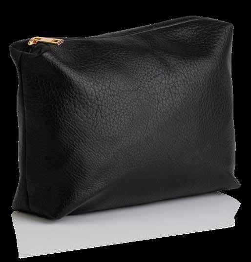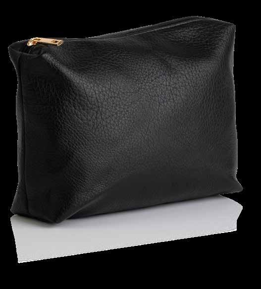 Black PU handbag. Gold plated hardware. Comfortable shoulder strap. Nylon zip closure. Fully lined. Inner side pockets. Protective dust cover.