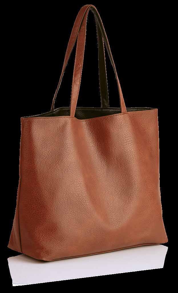 Tan PU handbag. Gold plated hardware. Comfortable shoulder strap. Nylon zip closure. Fully lined. Inner side pockets. Protective dust cover.