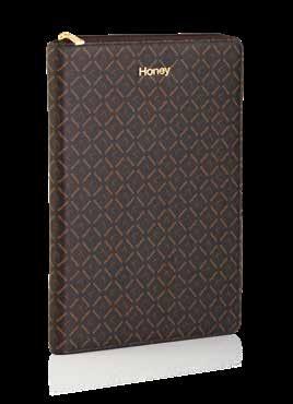 Toffee brown PU tote bag. Embossed branded detail. Magnetic clip closure. Fully lined. Inner side pockets. Handle opening: 70 cm circumference. Protective dust cover.