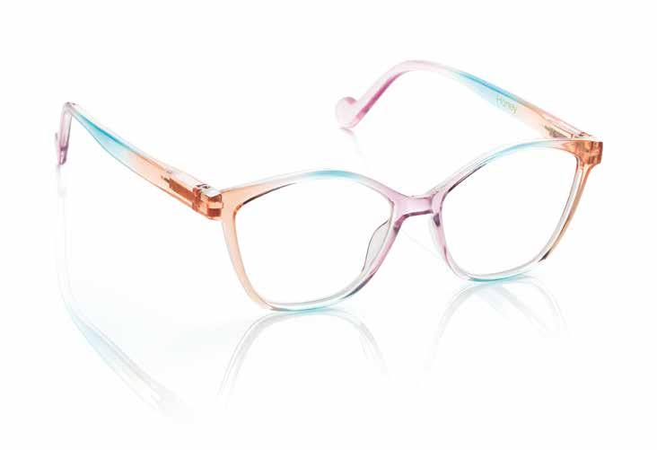 White polycarbonate frame. Gold plated metal temples and tips. Gradient topaz lenses. Protective hard case.