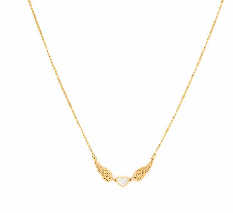 24ct gold plated two row necklace. Clear glass crystal. Shortest 38cm extends to 46cm. Lobster claw clasp. 80mm drop.