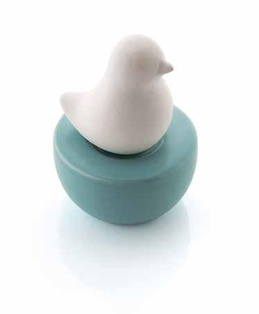 White natural diatomite bird shaped fragrance diffuser. Calm blue hand painted ceramic base. Includes 30ml ocean scented diffuser fragrance.
