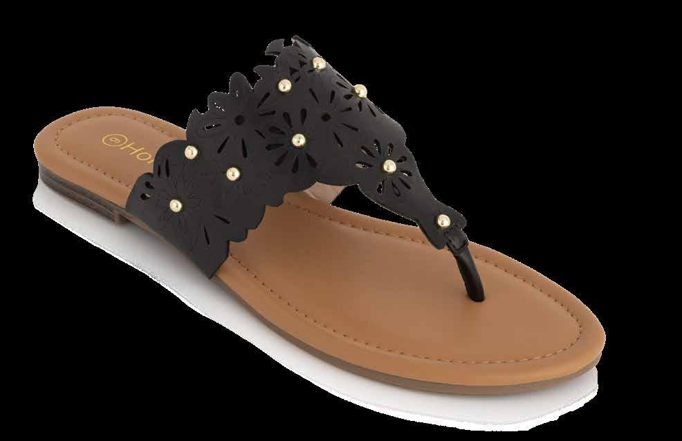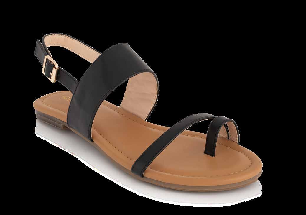 White PU flat sandals. Gold plated buckle closure. Heel height: 10mm.
