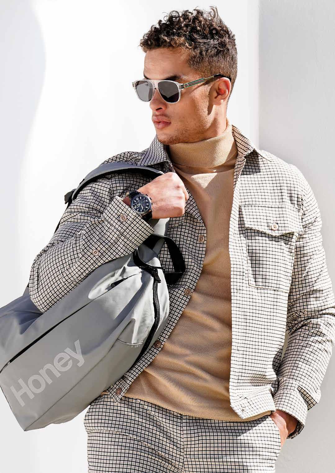 Flannel shirt, H&M. Polo-neck, Edgars. Track pants, H&M.