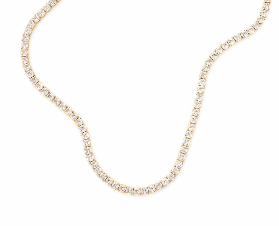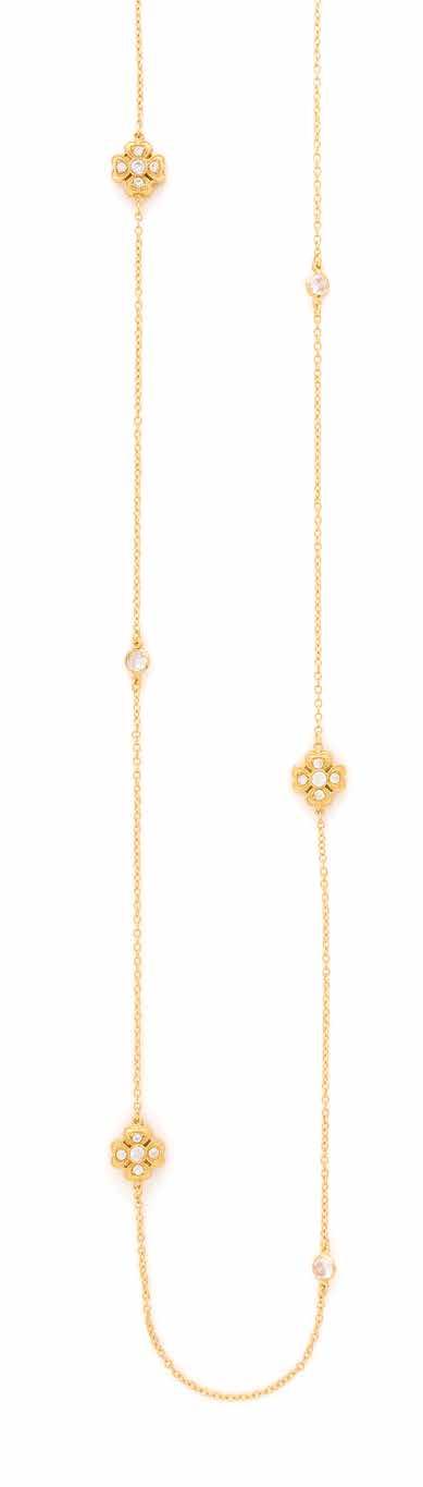24ct gold plated necklace. Clear zircon. 45cm. Fold over clasp.