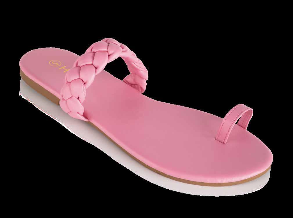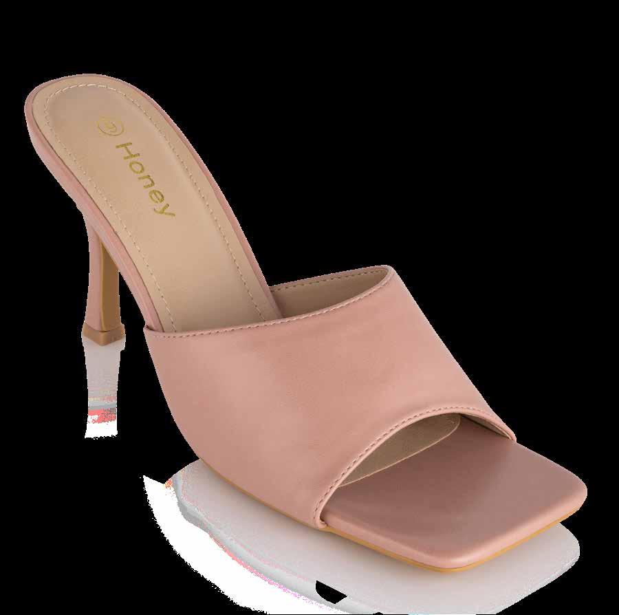 Light pink PU square toe slip-on sandals. Rubber sole.