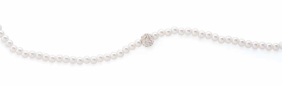 24ct gold plated necklace. Clear synthetic crystal. White synthetic pearls. 42cm extends to 47cm. Lobster claw clasp.