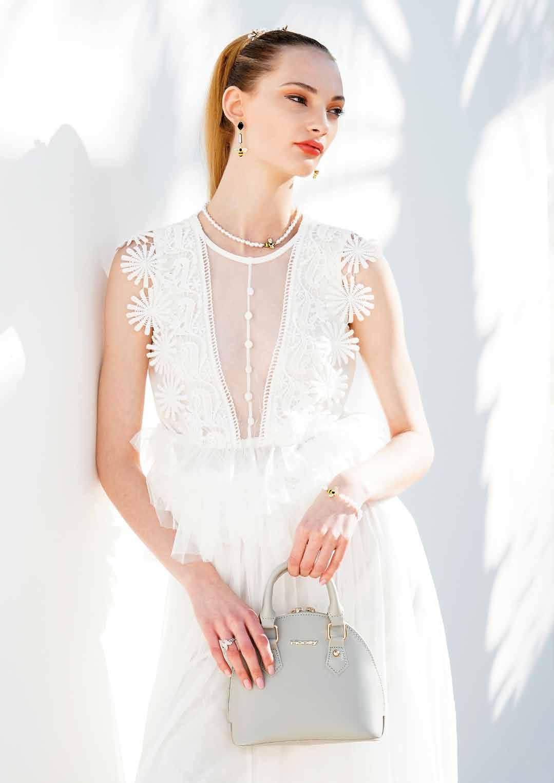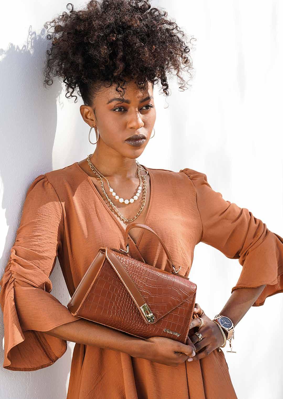 Pierced earrings come with a clutch stabiliser for comfort and security. Clip earrings feature comfortable clips • Neckware and bracelet lengths as stated in this catalogue include the clasp in the measurements, and may vary slightly between 0,5 and 1cm • Most of our neckware includes an extender – additional extenders may be available to purchase. Honey handbags can be cleaned with a soft damp cloth and dried immediately. Detergents should not be used.