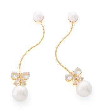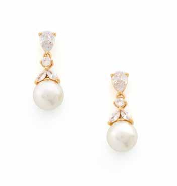 24ct gold plated earrings. Clear zircon. White synthetic pearls. 25mm drop.