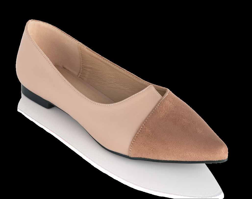 Dusty pink faux suede flat shoes. Pink PU detail. Rubber sole. Heel height: 10mm. R649