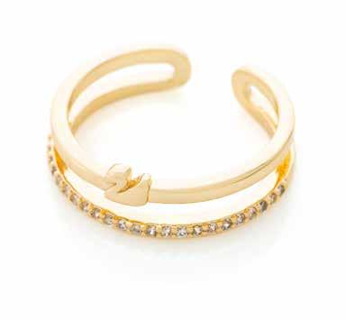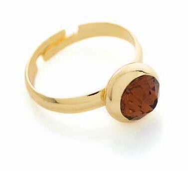 24ct gold plated ring. Clear zircon. 18mm. Semi-adjustable. 5mm width.