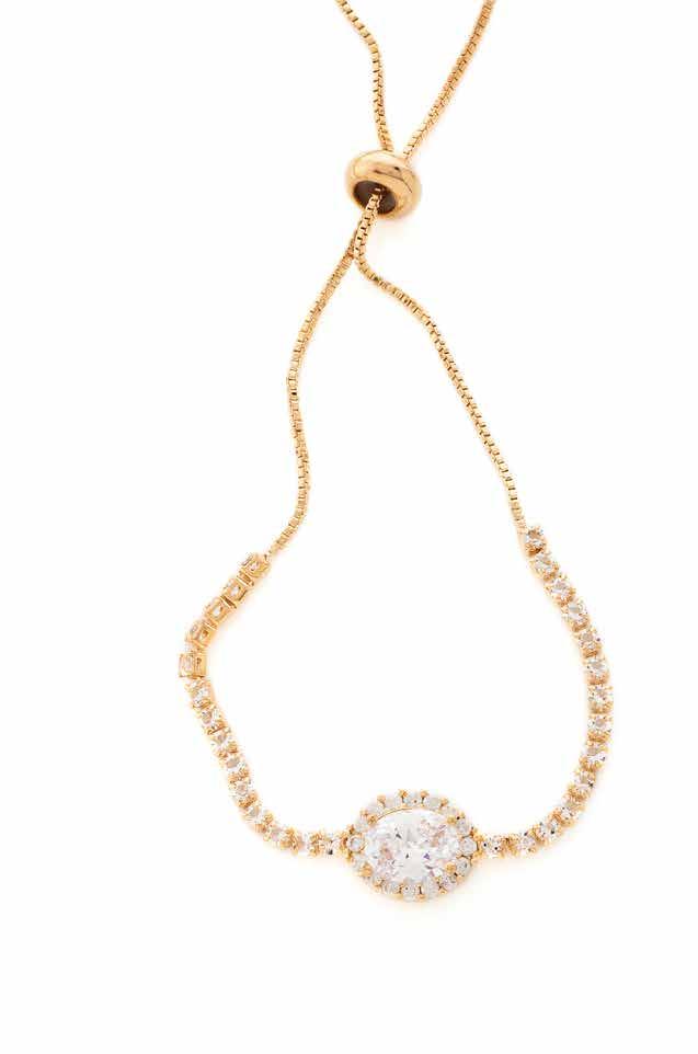 24ct gold plated bracelet. Clear zircon. 18cm. Adjustable. Pull closure. R229
