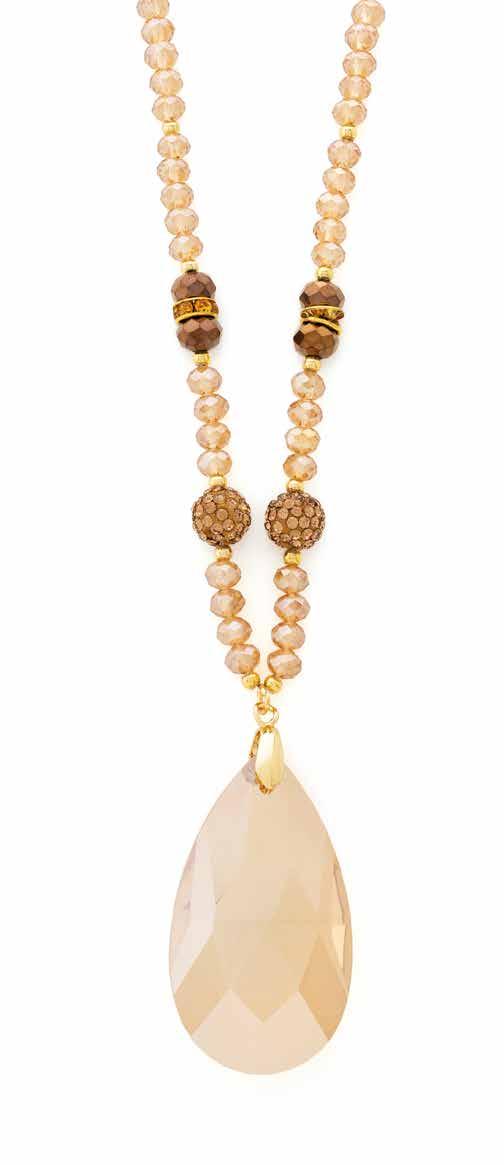 24ct gold plated necklace. Light colorado topaz and brown acrylic beads. Light colorado topaz synthetic crystal pendant.