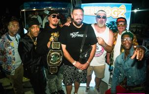 Honeysuckle, dead prez, and 40 Tons at the 2023 Emjay Awards, Las Vegas. Left to right: Sam C. Long, Corvain Cooper, Loriel Alegrete, Anthony Alegrete, Umi RBG, Ronit Pinto