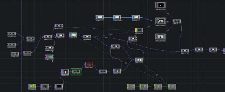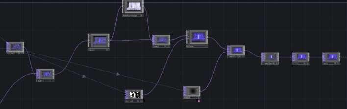 The Serial component is used to receive data from the Arduino, which consists of 0 and 1 values, and this is converted into CHOP values using the datto component. The data processing here determines the switching behavior of the switch and cross components. Virtual values are also used to simulate the Arduino's 0 and 1 values by adjusting constant3, which now controls the changes in switch3, toggling between 0 and 1. This value is then mapped to control constant1, and constant is connected to express and count. When the value is 1, it triggers continuous counting, making the count data range from 0 to 3, which influences the previous effects and generates continuous variation.