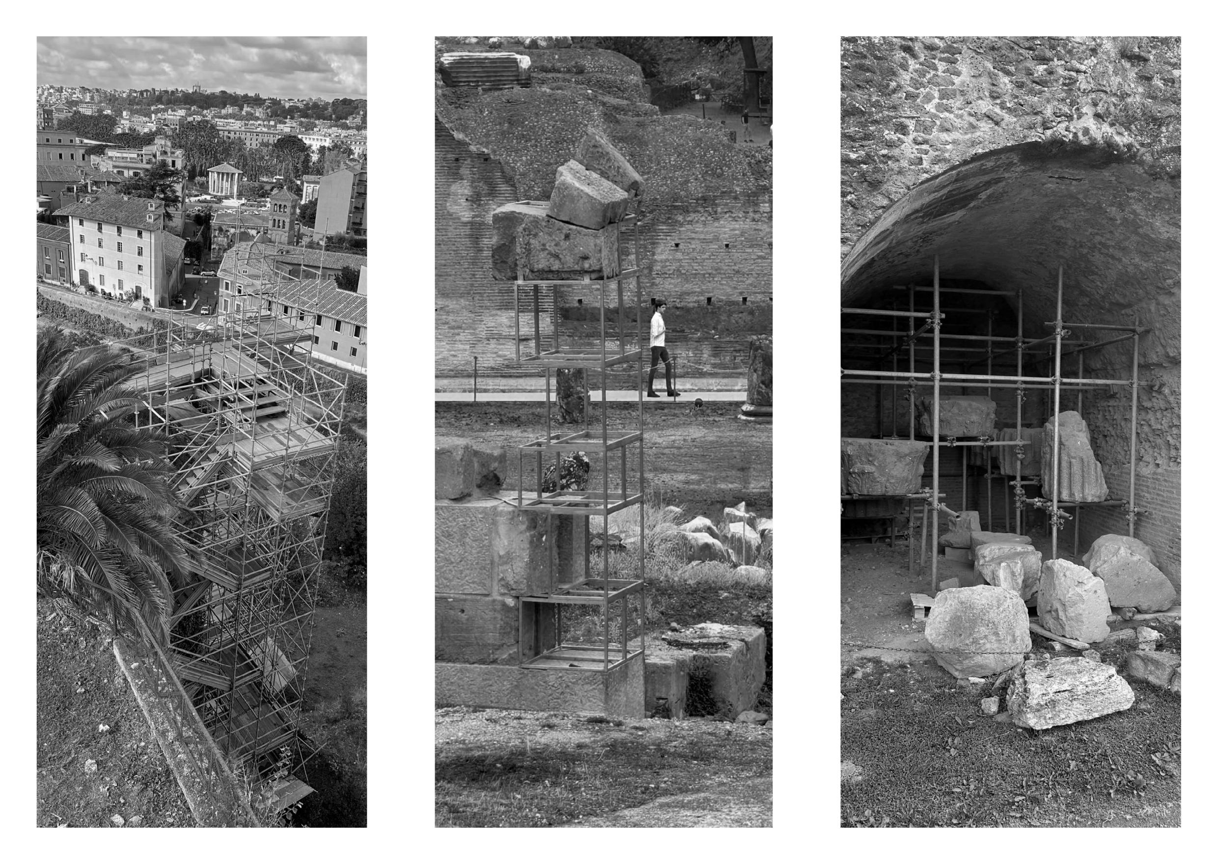 Scaffolding, a ubiquitous presence in Rome, stands in stark contrast to the buildings. This juxtaposition inspired my project, symbolizing the ongoing preservation and restoration of history, as if the past is continually upheld and supported.