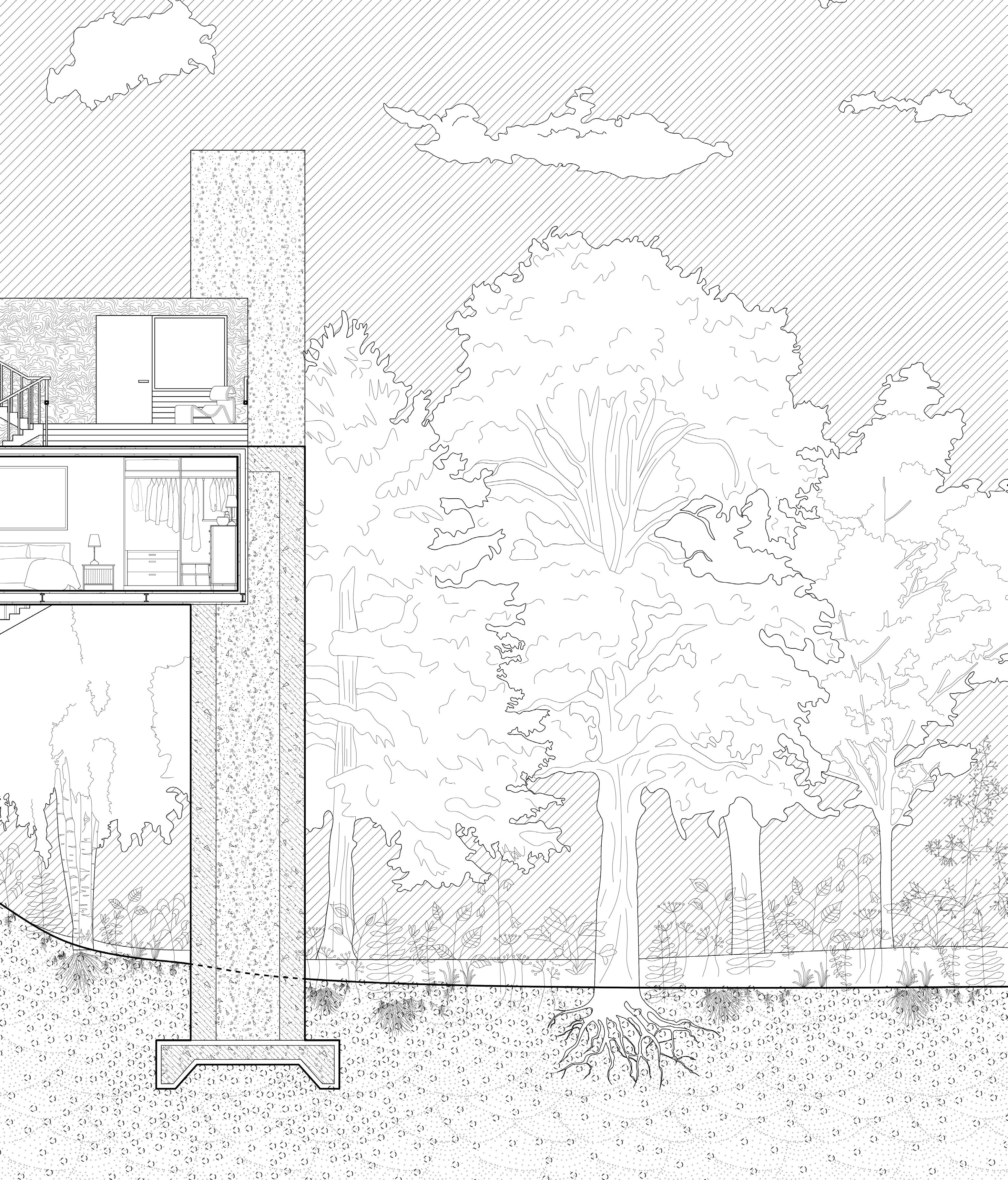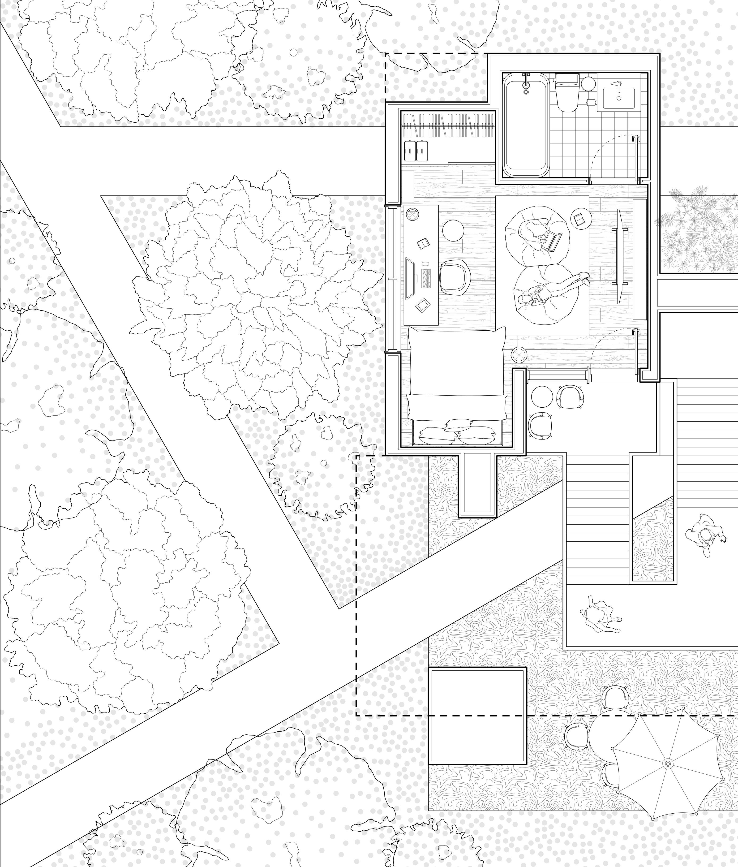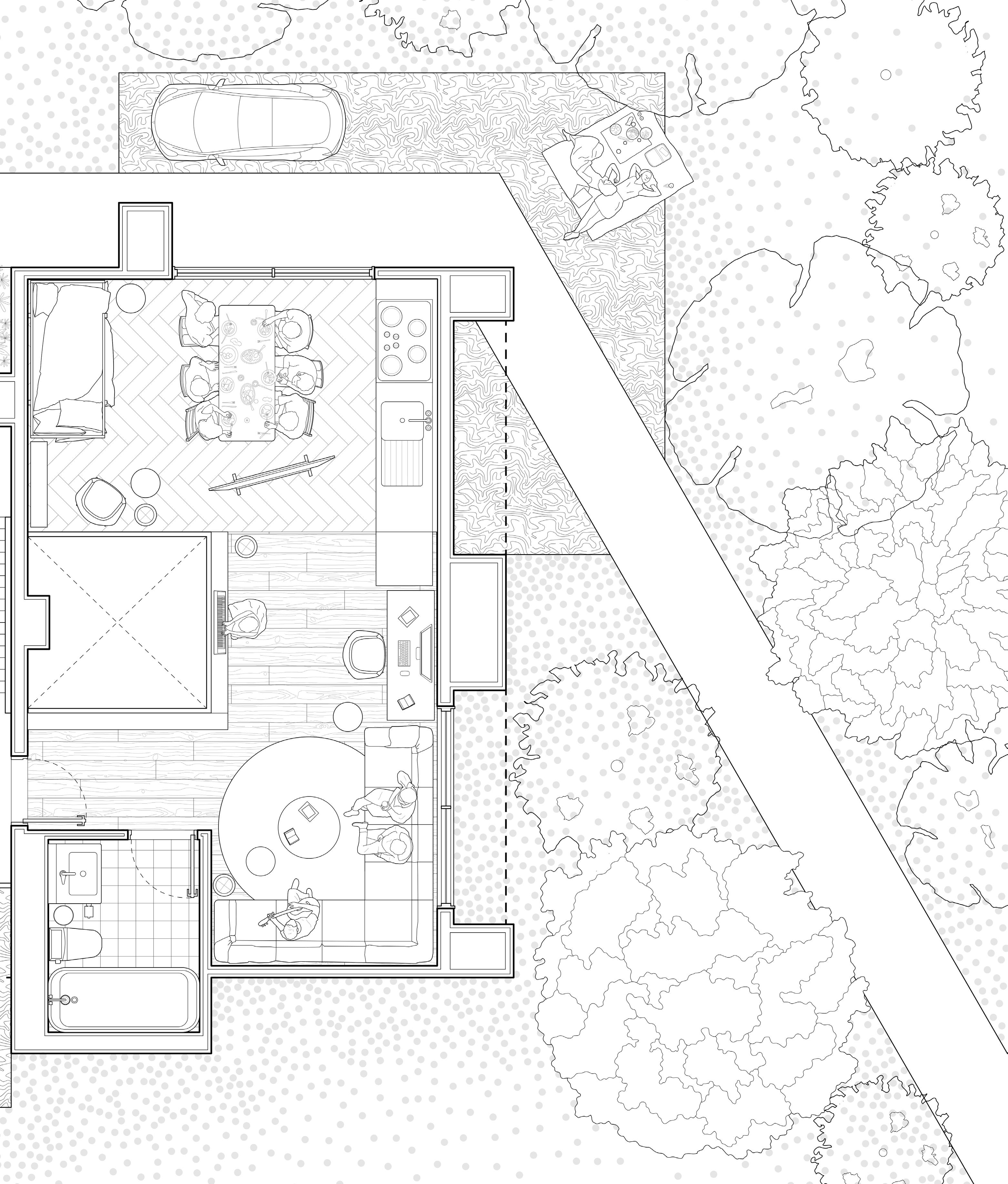 Through a design strategy of intersection, interconnected spaces are created, ultimately shaping a multifunctional co-housing residence. While enjoying their own private spaces, people also share access to a vibrant and dynamic public environment.