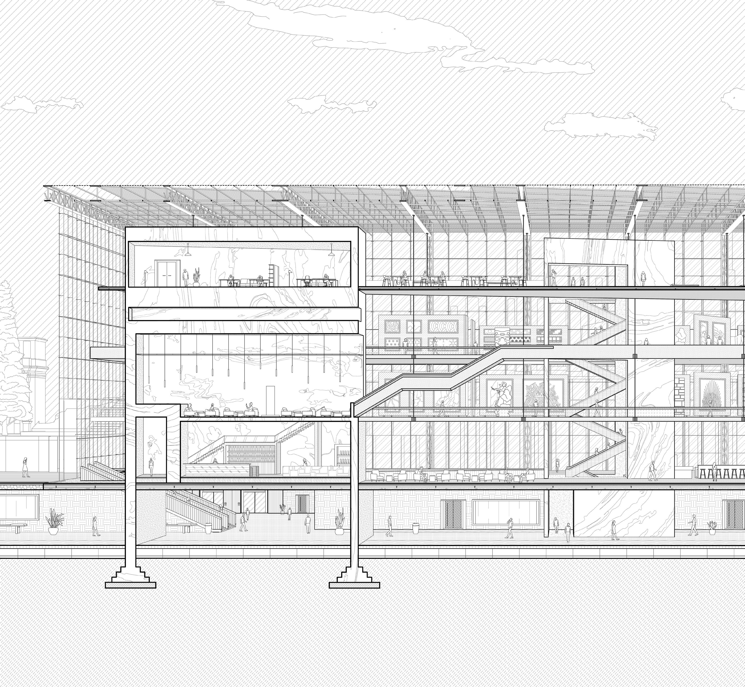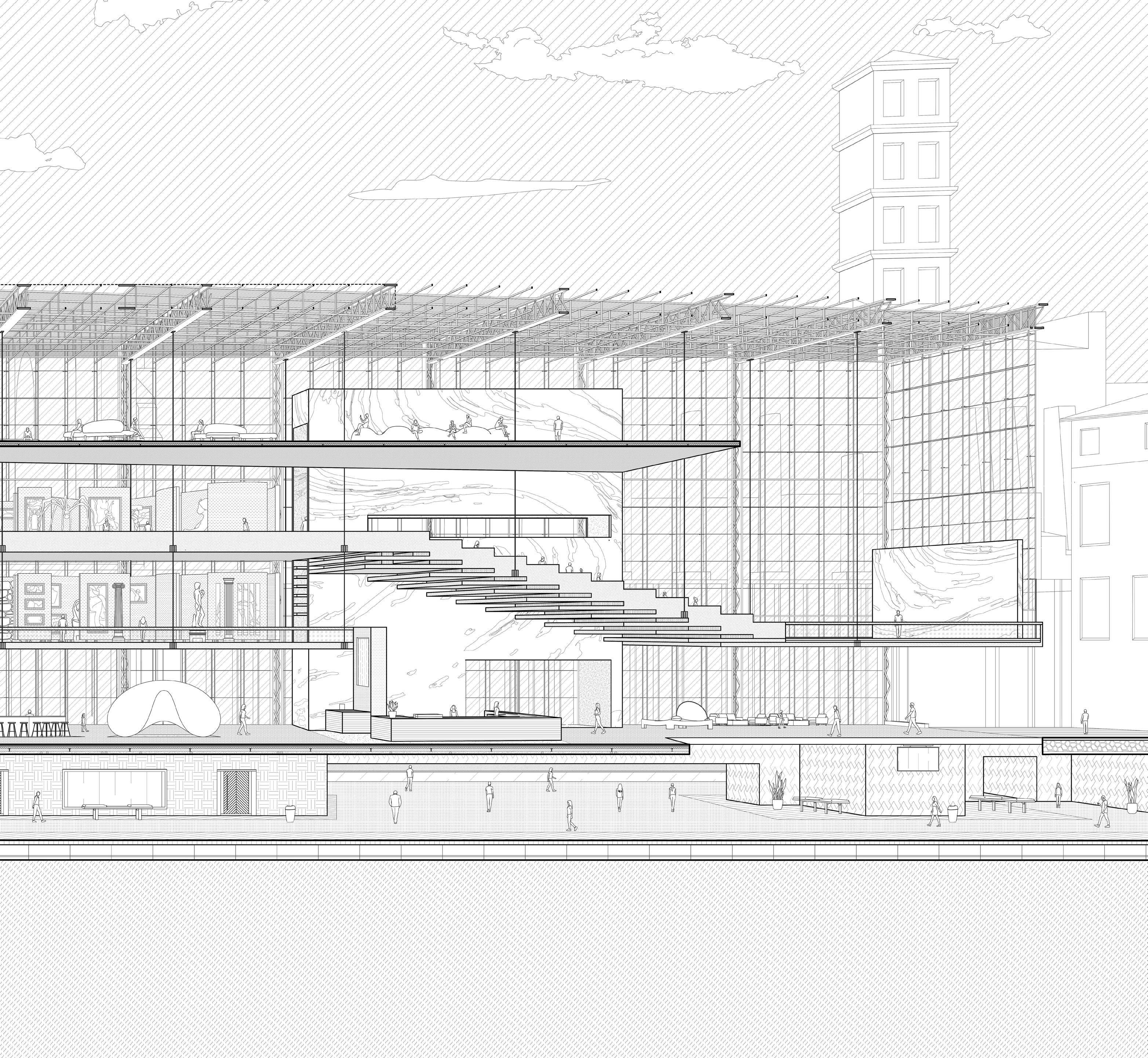 Situated above a subway station, the project is conceived as an extension of the urban fabric. It operates not only as a museum for cultural exploration but also as a multifunctional civic venue, accommodating events, gatherings, and everyday leisure for both residents and visitors.