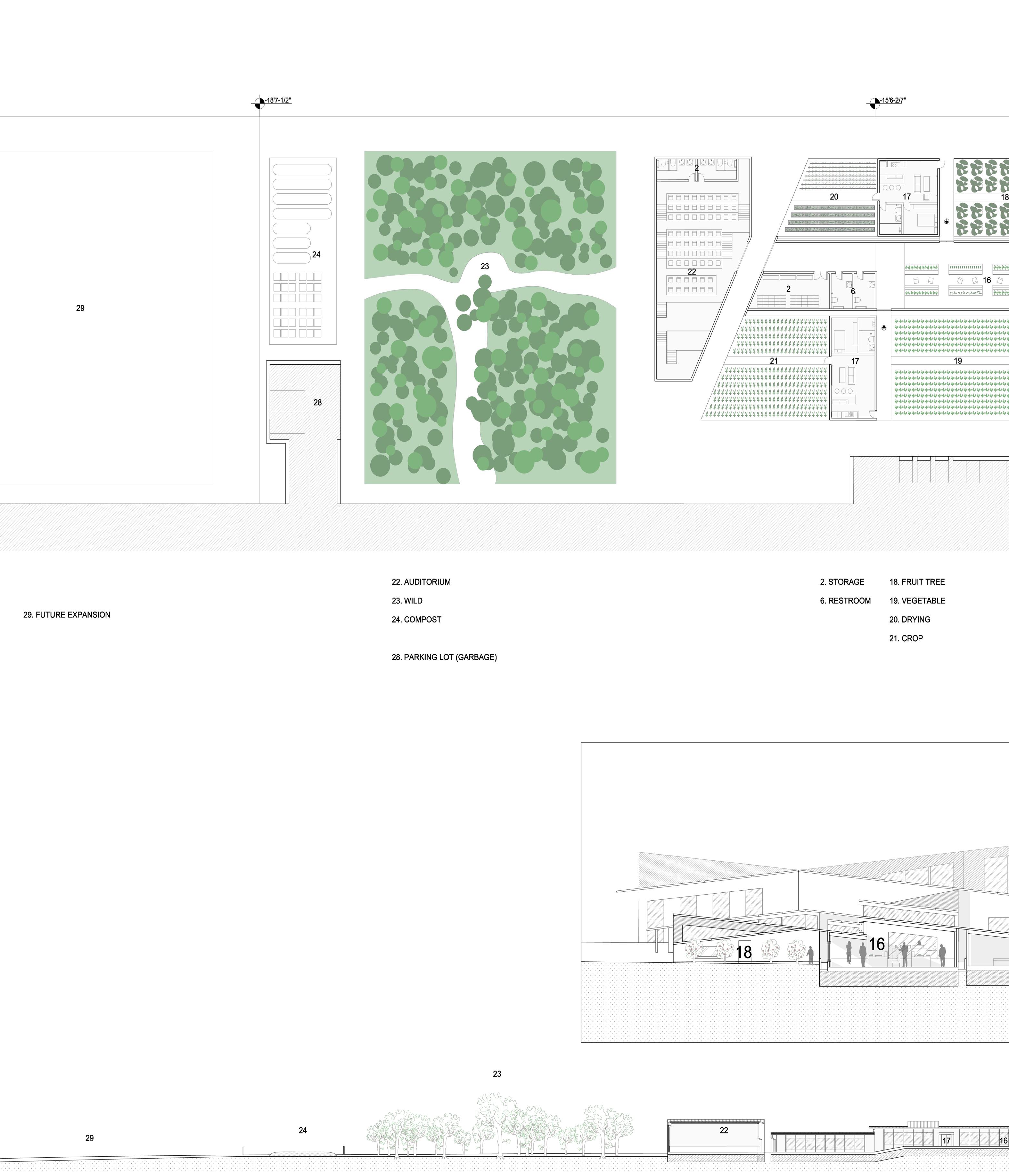 The project adopts a linear narrative sequence. As visitors move through the building, they gradually enter a series of distinct functional spaces. This progression not only guides the flow of people across each zone but also fosters a deeper understanding of the resources required behind food production.