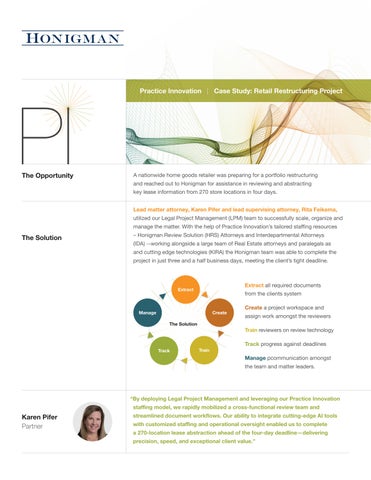 Honigman is a business law firm that operates with an eye towards responsiveness and innovation in all that we do. Founded in Detroit in 1948, we’ve expanded to include offices across Michigan, to Chicago and Washington, D.C. Our sophisticated attorneys counsel clients on complex issues in more than 60 legal practice areas. We’re proud to have recruited the best and brightest legal minds from across the United States – including from the U.S. Department of Justice, Am Law 50 firms, and leading global organizations – to help further strengthen our practice group expertise. We’re proud of our promise to diversity, equity and inclusion; living that commitment every day with our clients and the community. Our firm remains at the forefront of innovation by creating new approaches to leverage our intellectual horsepower while adding value for our clients. We stay on top of the latest legal trends in M&A, private equity, and consulting on growth companies. We help clients get ahead of intellectual property, security and other risks with customized, yet practical solutions.