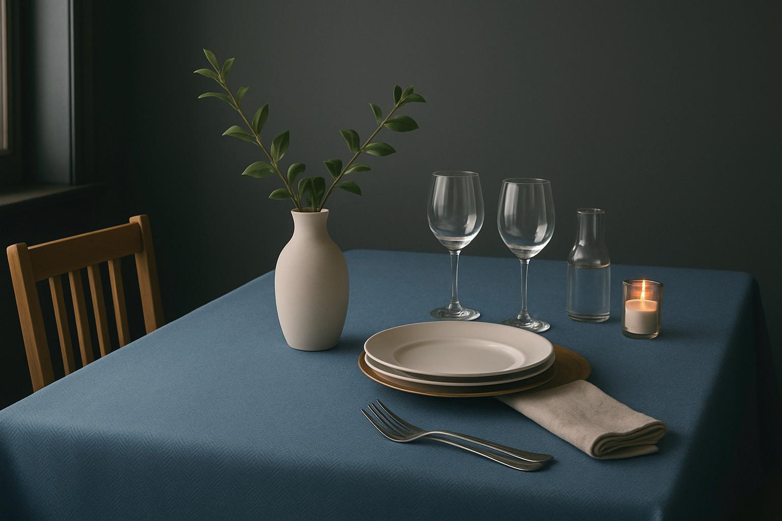Designed with understated elegance, the fabric enhances the atmosphere with a quiet sense of sophistication while ensuring stability and versatility for tablecloth applications.