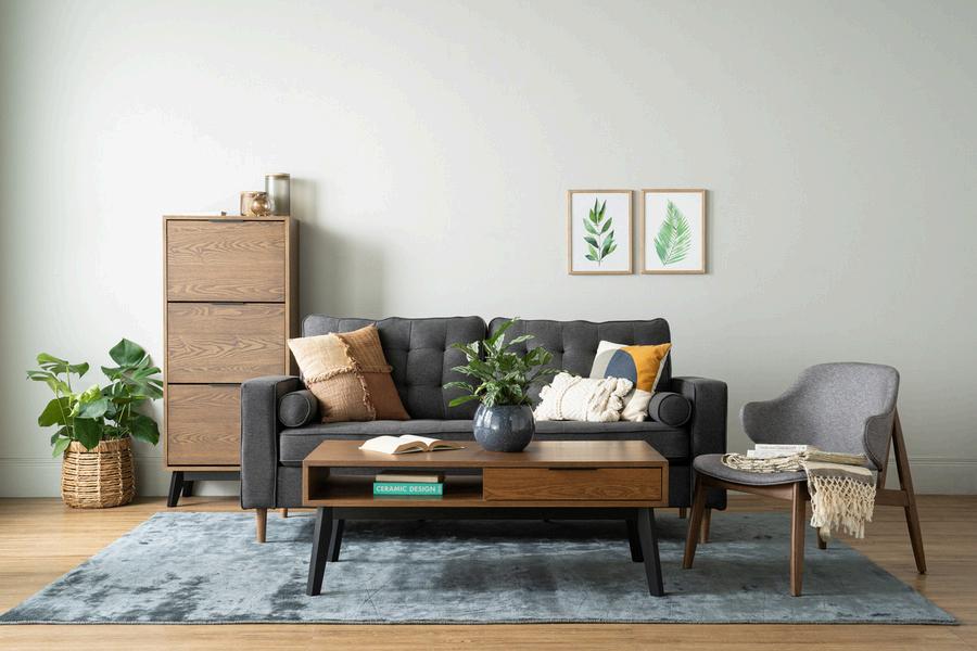 Frame: Solid wood inner frame, High density foam with Fabric cover
