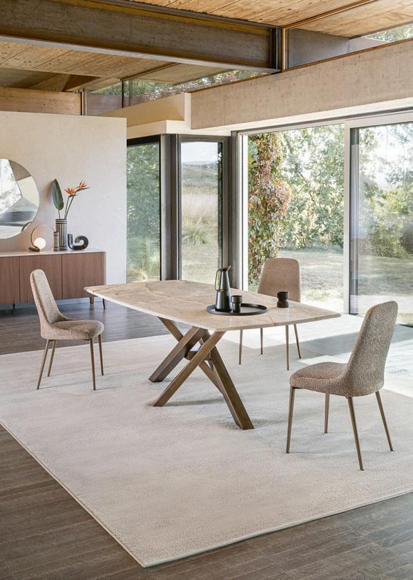 We use contemporary processing methods that ensure the perfection expected of goods made in Italy For example, handbrushed nishes, applied to cabinet doors, the bases of many tables, and chair legs, which make each item unrepeatable From this year, the brass nish on painted metal also includes titanium and cobalt, hand brushed to achieve a characteristic textured, satin nish. CNC technology combines with hand nished details to add value to each individual item.